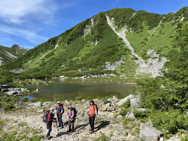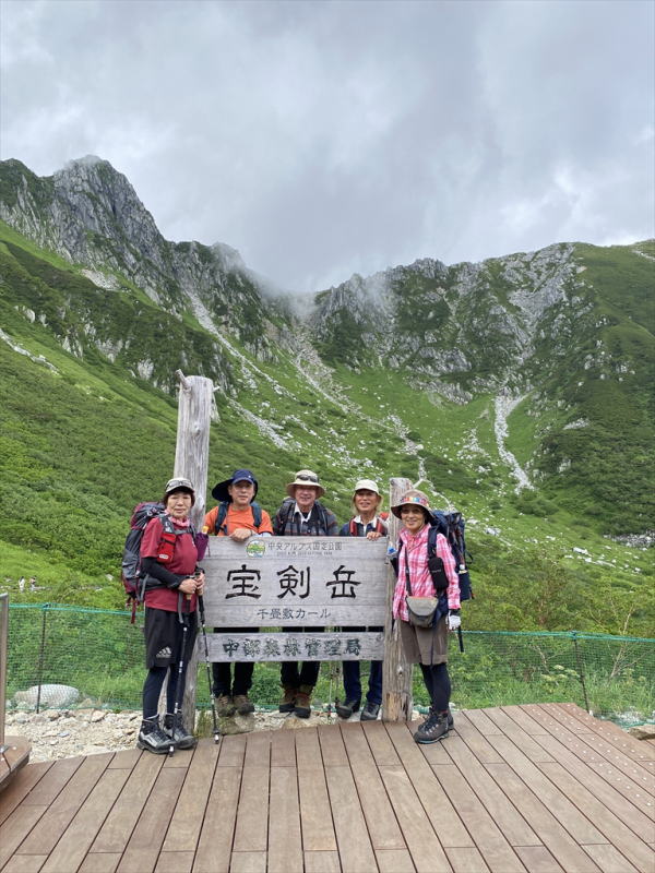 | 千畳敷にて。これから登る宝剣岳を背景に記念写真 | |||||||||||||||||||||||||||