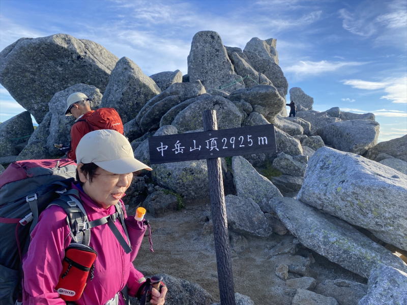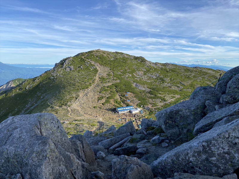 | 木曾駒ケ岳の頂上が見えました。下の青い屋根は頂上山荘です | |||||||||||||||||||||||||||