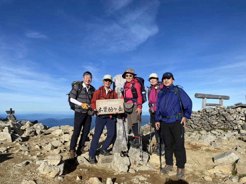 | コース | 木曾駒ケ岳 1日目 千畳敷~乗越浄土~宝剣岳~宝剣山荘(宿泊) 2日目 宝剣山荘~中岳~木曽駒ケ岳~濃が池~ 駒飼ノ池~乗越浄土~千畳敷 御嶽山 田の原登山口~王滝頂上(往復) |