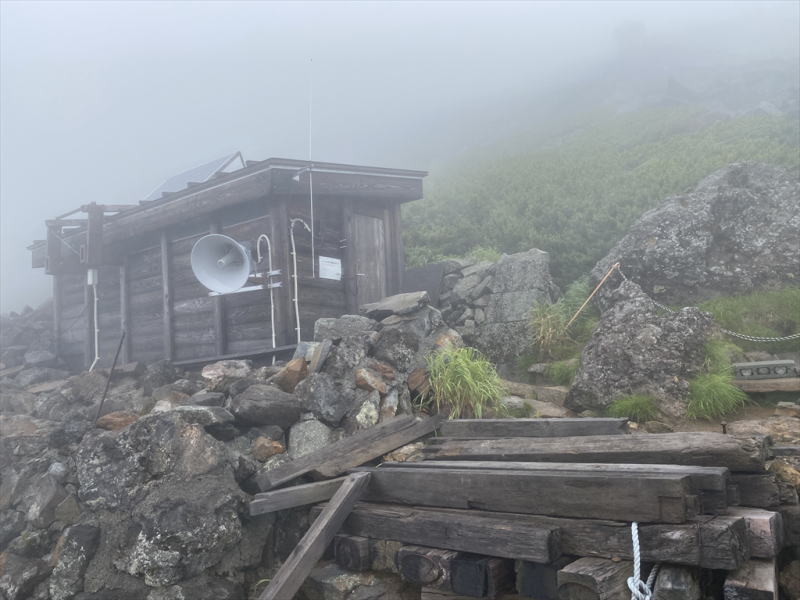 | 九合目の避難小屋です。雲の中に入ってしまいました | |||||||||||||||||||||||||||